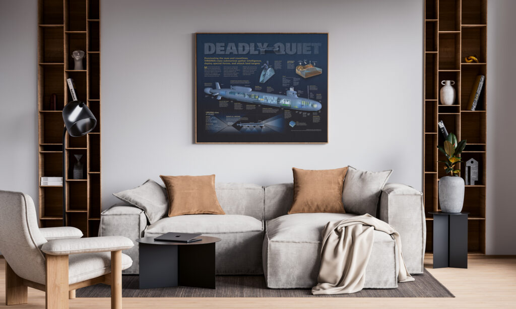 This is the original, U.S. Navy-commissioned Virginia-class illustration. It offers the most detailed look under the skin of the most advanced submarine in history — without giving away any of its well-kept secrets. Deadly Quiet was originally published in the official Navy magazine, All Hands.